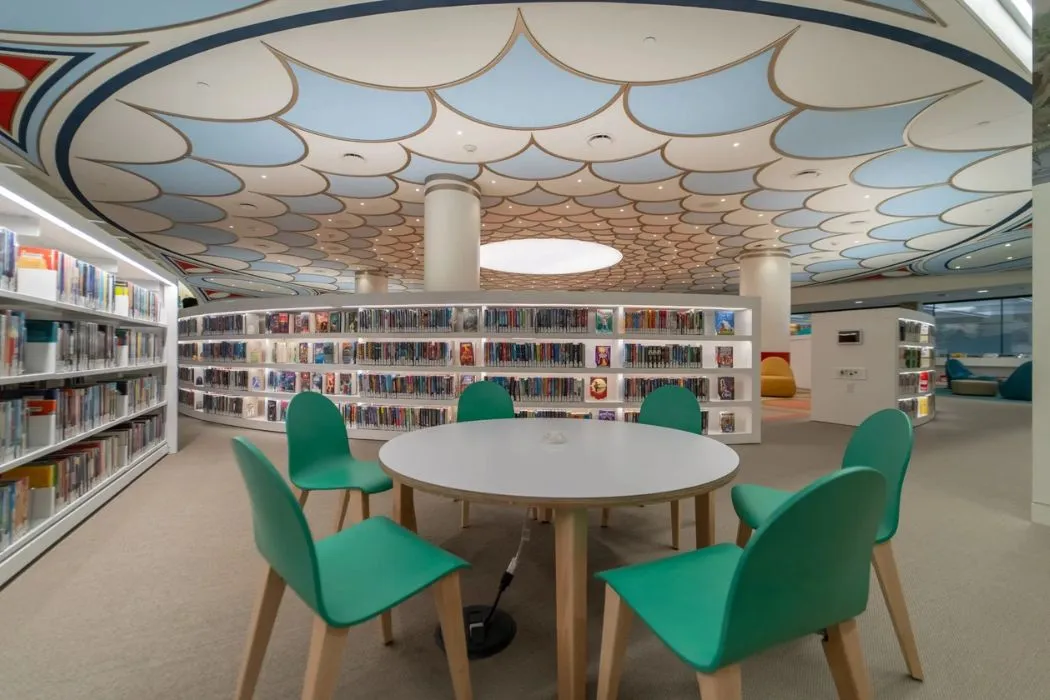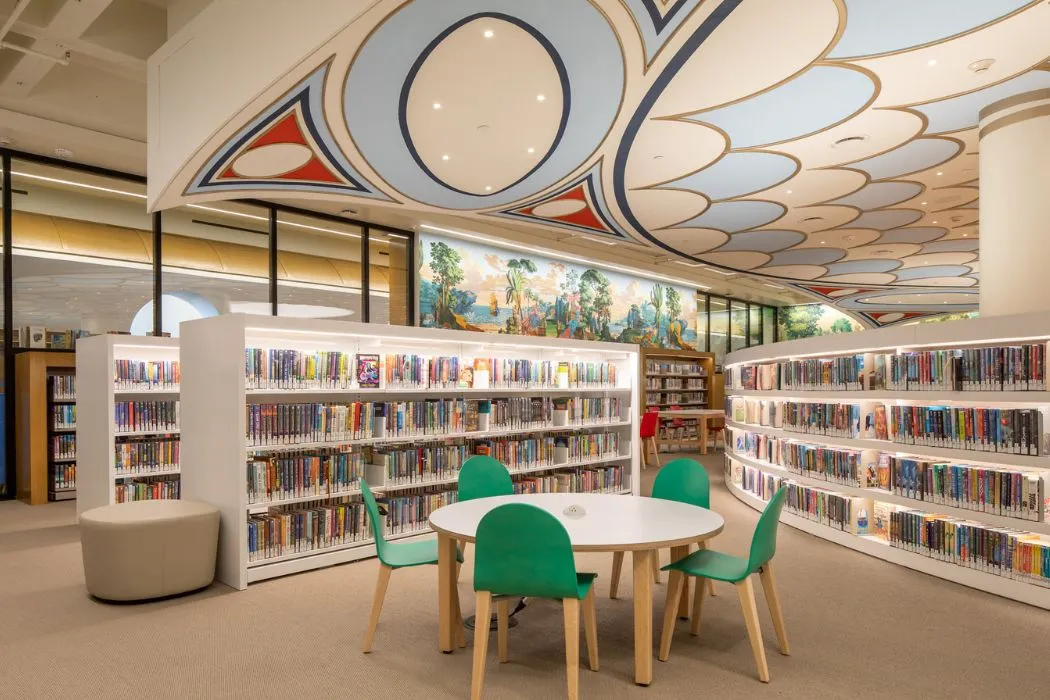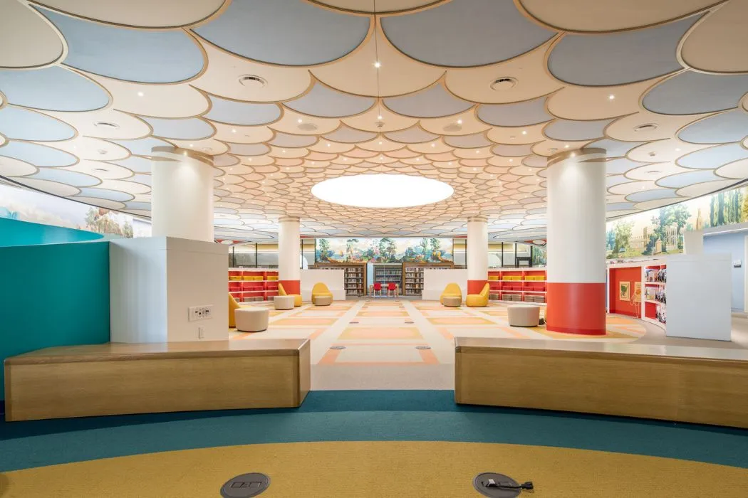 This 7,800 square foot renovation transformed the Glendale Central Library’s children’s and teen areas into vibrant spaces for learning and collaboration. Magnum’s standout achievement was an intricate, multi-colored domed ceiling installed without plan dimensions — developing all proportions and color transitions in real time from concept renderings, in close collaboration with architect Johnson Favaro and general contractor PCL Construction.