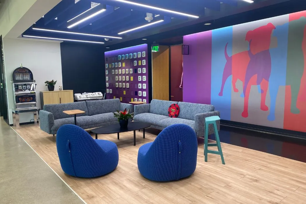 This 62,000 square foot building was completely remodeled to meet Zynga’s operational and design requirements. Magnum’s scope included painting GWB walls, exposed ceilings, and accent walls throughout. Magnum furnished and installed Nika Vaev 1″ Ecoustic Panels across multiple locations — stepping in to replace a previous order that arrived with defects and discoloration, and delivering a result the client was fully satisfied with. Magnum also furnished restroom accessories, appliances, FECs, fire extinguishers, and bike racks, working alongside contractor Clune and architect M Moser & Associates.