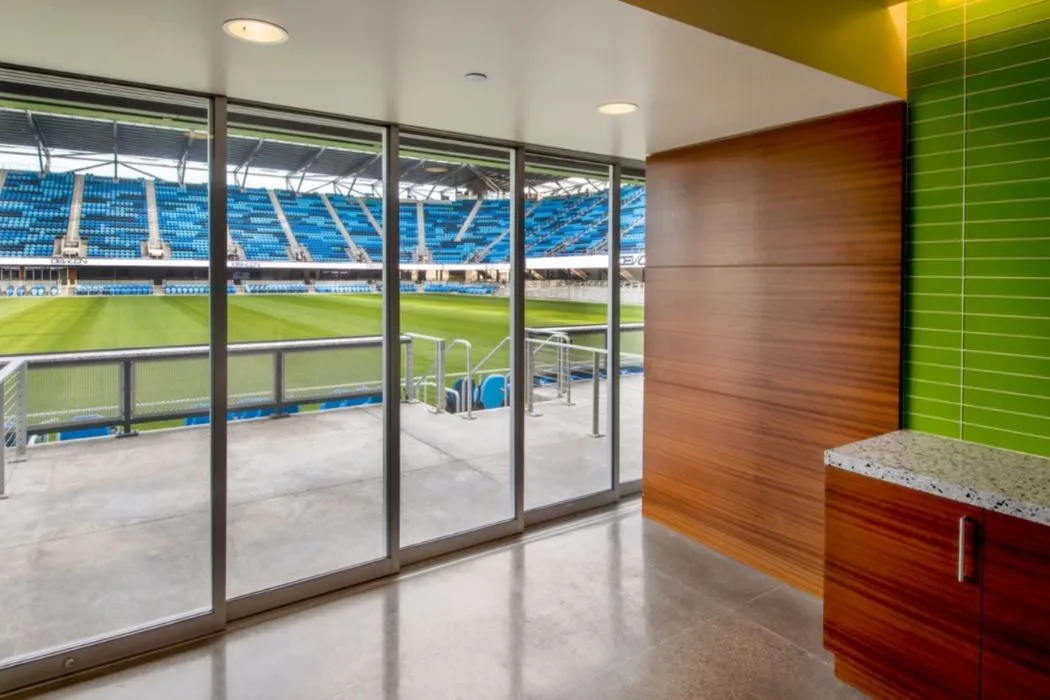 The PayPal Park in San Jose is a 14.5-acre site that accommodates an 18,000-seat Major League Soccer stadium with a 24,000-square-foot office building for the team. There are also luxury suites, a press box, and concession stands. It features a steel structure with aluminum decking, CMU concourse buildings, metal panels, metal screening, and a partial canopy. The office building, which is a steel structure with glass, metal panels, and CMU skin, consists of office space, team lockers and showers, coach and referee facilities, a ticketing office, and physical therapy/training areas.